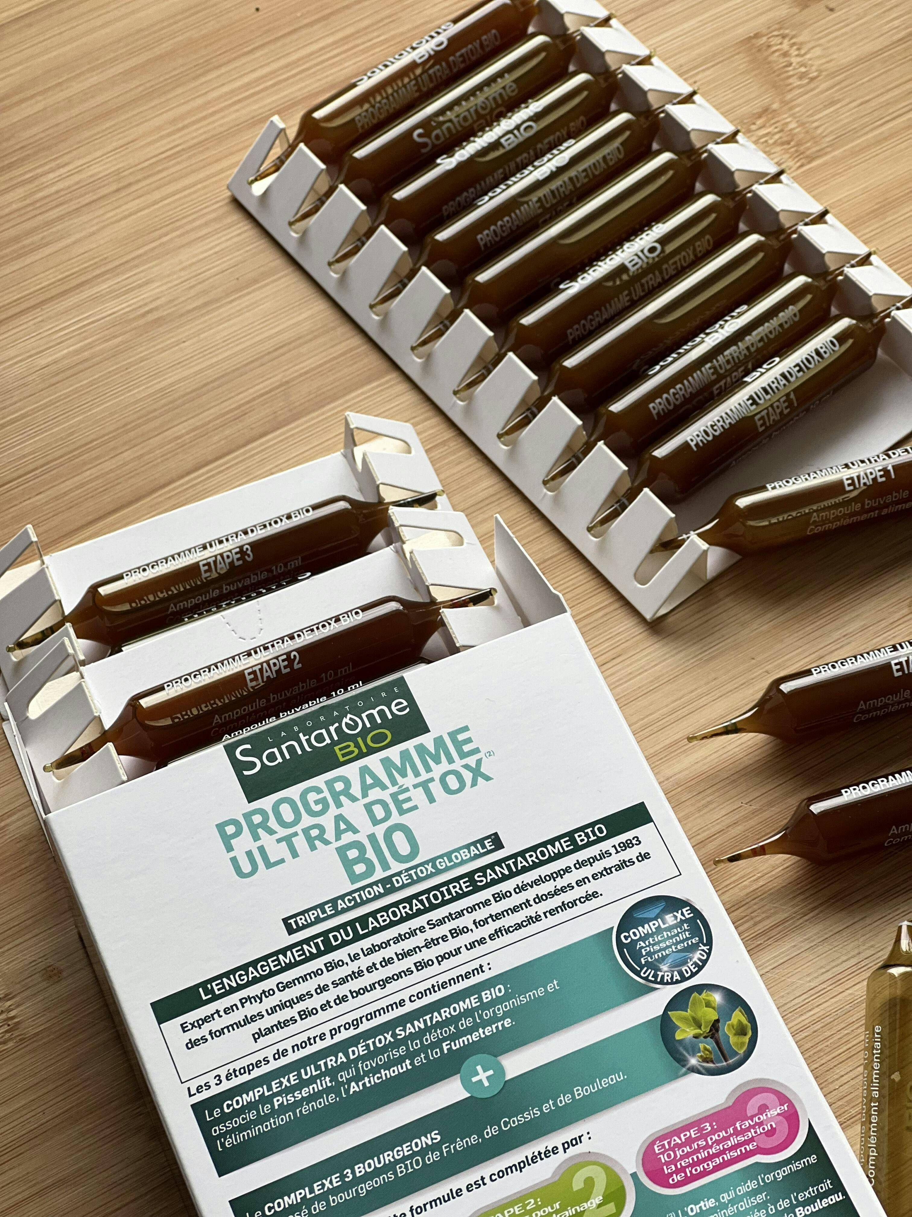 Le programme Ultra Détox Bio de Santarome Bio dure trente jours, soit trois séries de dix jours chacune.